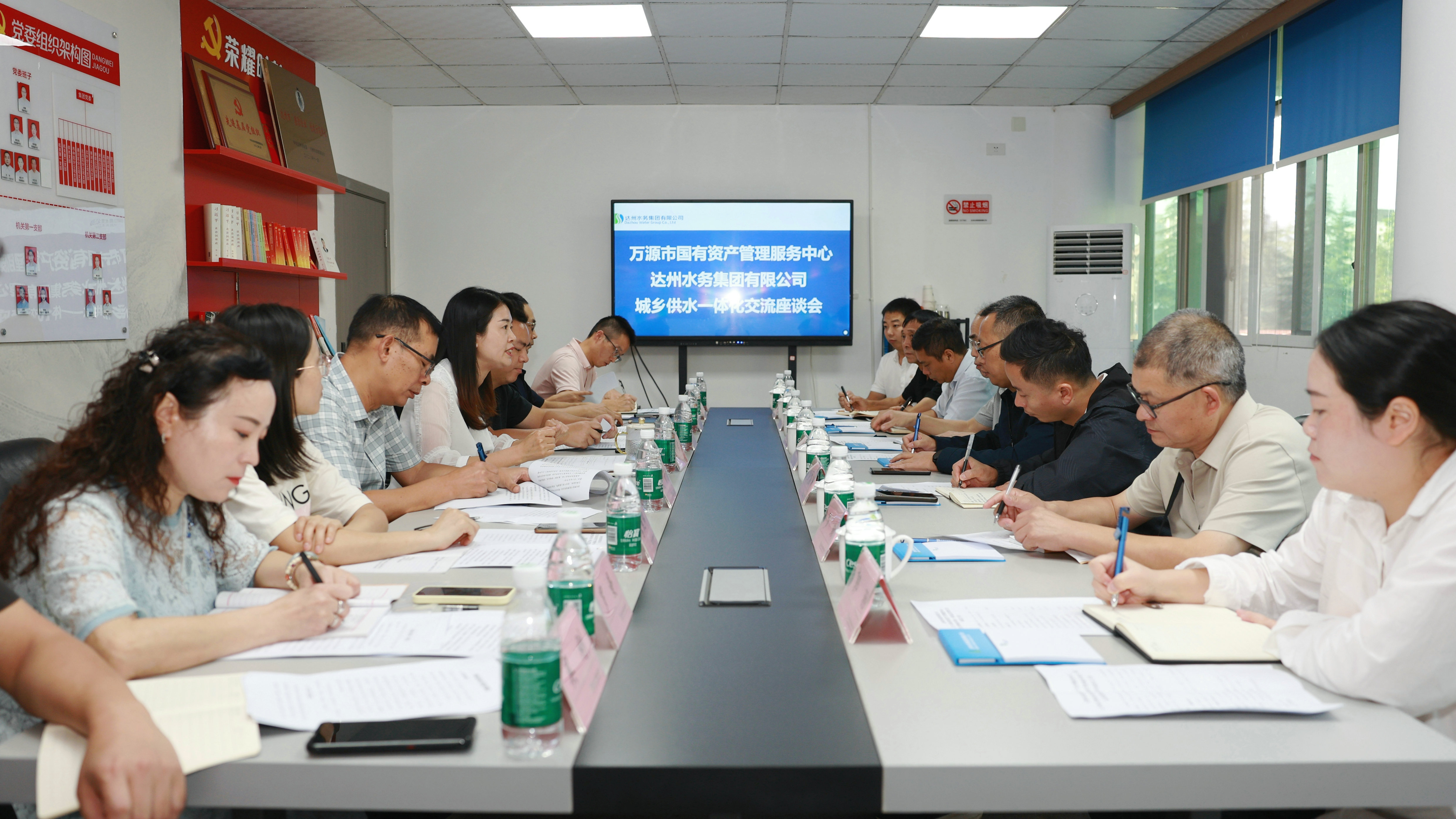 10月10日,萬(wàn)源市國(guó)有資產(chǎn)管理服務(wù)中心聯(lián)合萬(wàn)源市水務(wù)局、市城投公司、市農(nóng)投公司和市時(shí)潤(rùn)供排水公司一行7人來(lái)我司考察交流城鄉(xiāng)供水一體化運(yùn)營(yíng)管理工作。集團(tuán)黨委委員、副總經(jīng)理李莉君,相關(guān)部門(mén)、子公司參加會(huì)議。