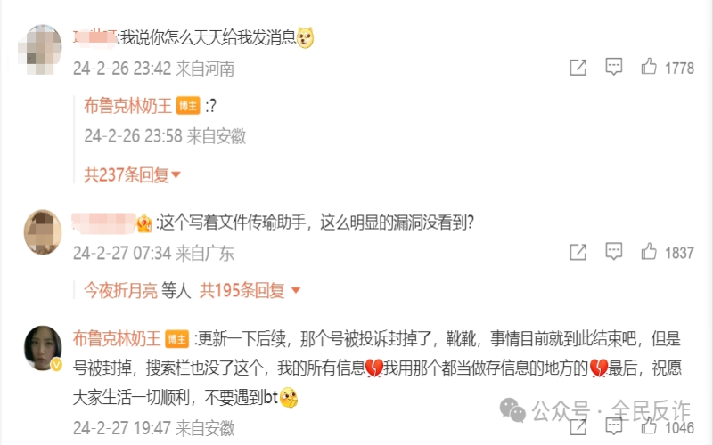 此事中,從博主所述看,對方并沒有向博主提出轉(zhuǎn)賬、進(jìn)群等,對她所發(fā)的消息(無論是之前誤認(rèn)還是意識后去找對方理論)都一概不理。