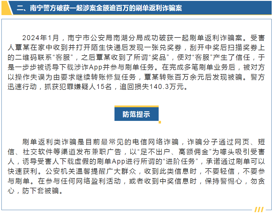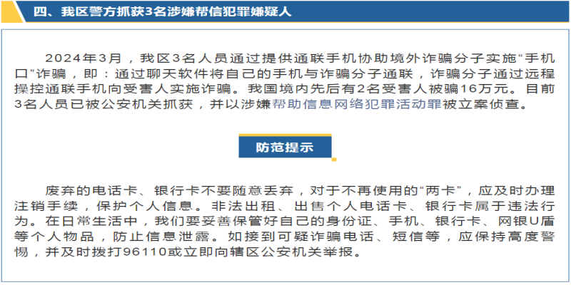 7月10日,自治區(qū)公安廳召開(kāi)廣西公安機(jī)關(guān)打擊整治電信網(wǎng)絡(luò)新型違法犯罪新聞發(fā)布會(huì),發(fā)布四起典型案例。