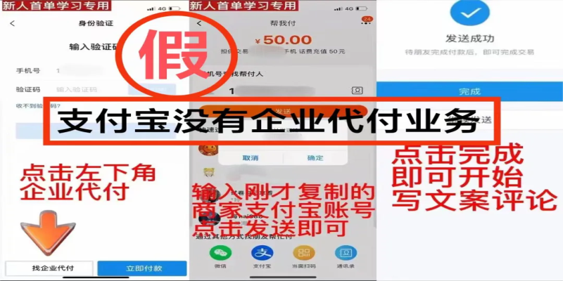 詐騙分子在網(wǎng)絡(luò)平臺(tái)大量發(fā)送“刷單兼職,無需墊付資金”的虛假廣告,吸引受害人上鉤。當(dāng)受害人主動(dòng)聯(lián)系詐騙分子后,詐騙分子會(huì)聲稱“企業(yè)代付,無需受害人墊付資金,零風(fēng)險(xiǎn)”,并發(fā)送虛假的企業(yè)代付操作流程或視頻,讓受害人信以為真。實(shí)際上支付寶并沒有企業(yè)代付業(yè)務(wù)。當(dāng)受害人按照詐騙分子所說的進(jìn)行操作時(shí),會(huì)直接扣除受害人賬戶中的資金。當(dāng)受害人要求退款時(shí),詐騙分子利用受害人損失錢財(cái)急于追回的心理,以幫助受害人申請(qǐng)退款為由,讓受害人下載視頻會(huì)議軟件,并開啟屏幕共享功能,竊取受害人的銀行卡號(hào)、銀行卡密碼、短信驗(yàn)證碼等信息,或誘騙受害人進(jìn)一步轉(zhuǎn)賬匯款,從而騙取更多資金。