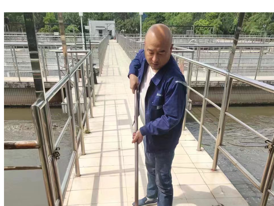 為了實時上傳的6個指標(biāo)能正常穩(wěn)定達標(biāo),無論天晴下雨,不顧臭味撲鼻,陳軍每隔1-2小時就會對各水池和機房進行巡視,還要對生化池人工格柵清理出的垃圾進行打撈;還要巡視查看粗細格柵是否正常清渣,沉沙池回流泵、刮泥機、淲池是否正常運行,并根據(jù)水量情況及時調(diào)整風(fēng)機風(fēng)量大小。尤其是在刮泥機出現(xiàn)較大故障時,他需要一邊自行處理,一邊請維修班協(xié)助,為了確保盡快恢復(fù)生產(chǎn),他會與大家通宵奮戰(zhàn)。