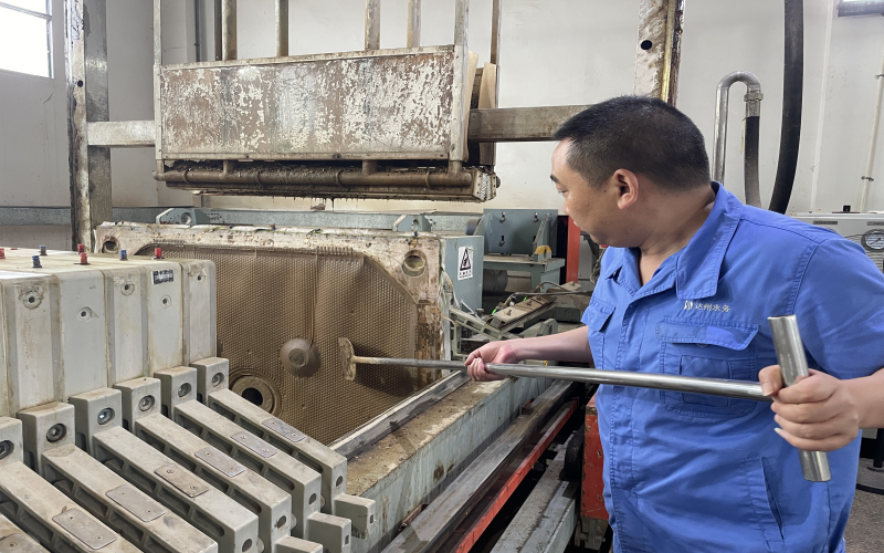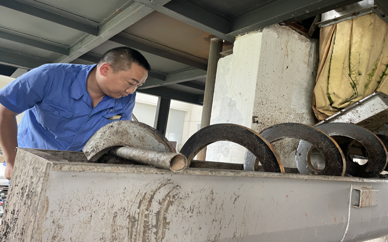 2018年1月,王穎被安排到新建成的周家壩污水廠工作,由于有污泥脫水的工作經(jīng)驗,帶頭學習新廠新設(shè)計的板框壓濾系統(tǒng)的重擔自然而然落在他肩上,他沒有抱怨新廠離家遠、交通不便利、脫水車間環(huán)境差等客觀問題,而是靜下心來一頭扎進學習的熱潮中。板框脫水系統(tǒng)看似只有進泥、調(diào)泥、壓泥、出泥幾道工序,但整套流程下來需要進行數(shù)十次步驟,還要根據(jù)泥質(zhì)調(diào)整步驟中的參數(shù),不厭其煩地記錄下每一次的試驗數(shù)據(jù),午餐時間他都毅然堅守在現(xiàn)場,同事們幫忙打來的飯,基本上是扒拉幾口便又和師傅討論起問題。尤其是炎熱的夏天“汗如泉涌”,機房的氣味刺鼻難聞,很多人不愿久干,為了能保證新廠正常出水投運,做好污泥處理的大后方,他堅持下來了,正是這樣重復的“常規(guī)操作”讓他順利出師。