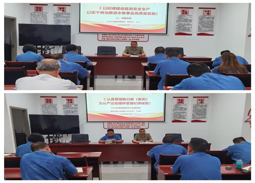 強黨性,講好一黨專題黨課。 一堂生動的黨課,是一場深刻的理論教育、一次初心的凈化洗禮。6月26日,支部聯(lián)系領(lǐng)導(dǎo)集團黨委委員、紀(jì)委書記王宇為支部全體黨員上了一堂主題為“以紀(jì)律建設(shè)促進(jìn)安全生產(chǎn) 以實干擔(dān)當(dāng)推進(jìn)水務(wù)事業(yè)高質(zhì)量發(fā)展”的黨課,并對全體黨員同志如何嚴(yán)格遵守黨規(guī)黨紀(jì)提出更高的要求。支部書記朱玉峰詳細(xì)解析了《中國共產(chǎn)黨紀(jì)律處分條例》中的“六大紀(jì)律”的相關(guān)內(nèi)容,讓全體黨員對“六大紀(jì)律”有了更清醒的認(rèn)識,黨性素養(yǎng)被進(jìn)一步錘煉。