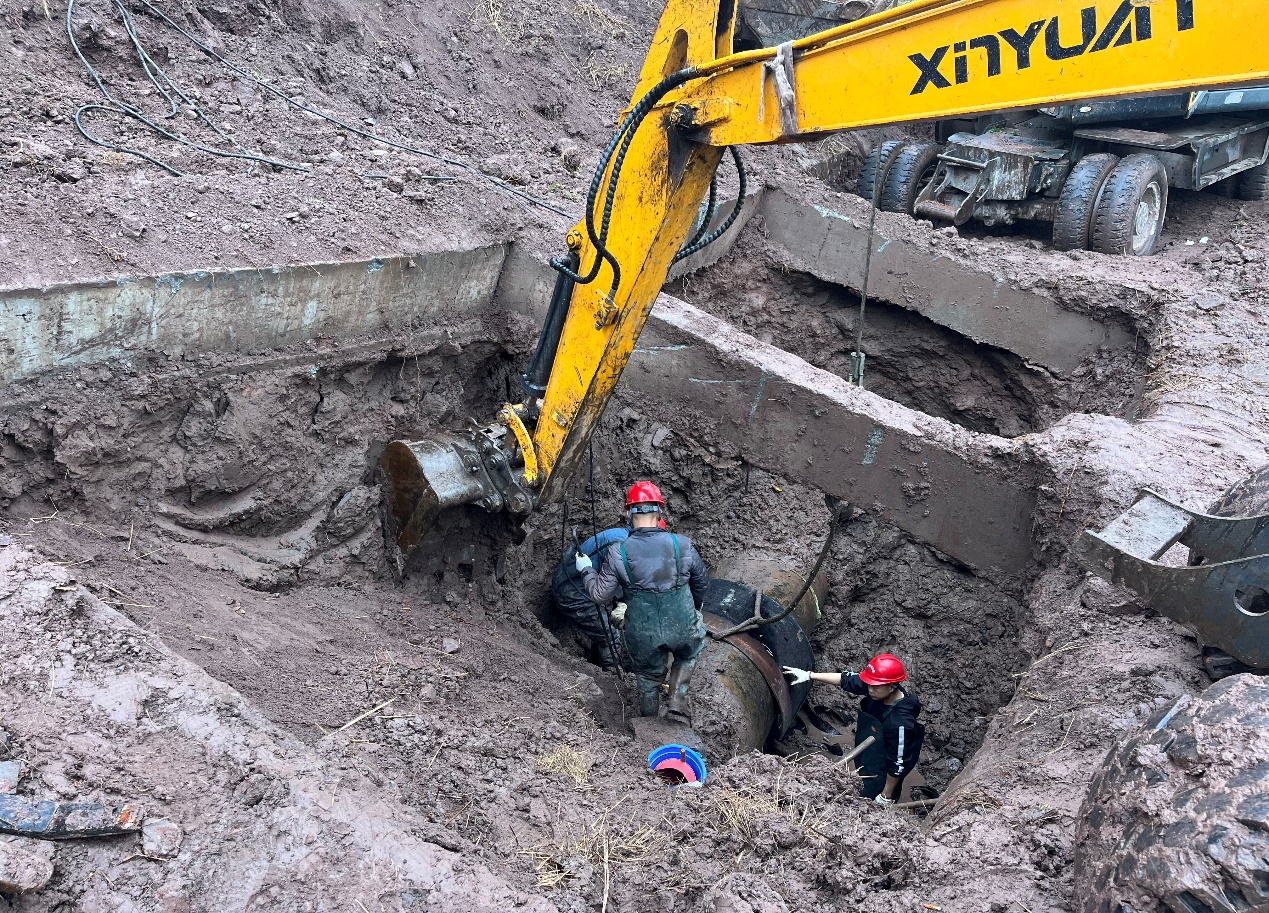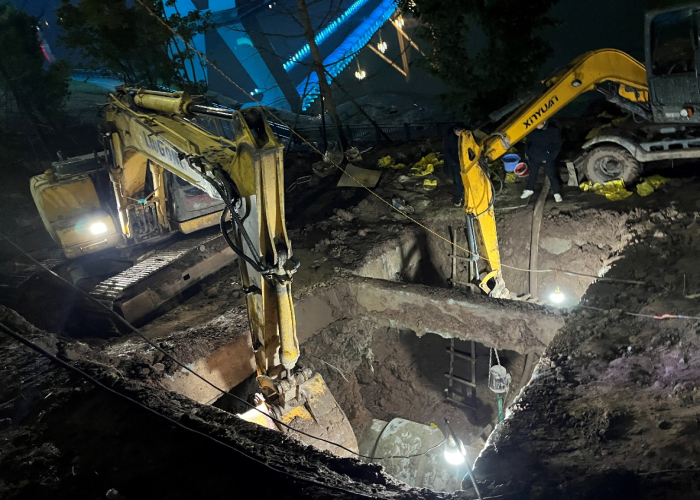 險(xiǎn)情發(fā)生后,水務(wù)集團(tuán)黨委高度重視,黨委書記、董事長盧輝帶隊(duì)奔赴搶險(xiǎn)現(xiàn)場(chǎng)指揮調(diào)度,要求惠泉公司立即組織搶修,盡快恢復(fù)管網(wǎng)運(yùn)行,盡最大努力減少污水外溢,集團(tuán)安全環(huán)保部、規(guī)劃建設(shè)部、惠潤達(dá)公司到場(chǎng)指導(dǎo)協(xié)助。惠泉公司領(lǐng)導(dǎo)班子立即召開緊急現(xiàn)場(chǎng)會(huì),連夜組織調(diào)度搶險(xiǎn)人員和設(shè)備,出動(dòng)搶險(xiǎn)人員100余人次,挖掘機(jī)、吊車、多功能搶險(xiǎn)車等工程機(jī)械10余臺(tái),合理調(diào)配人手,組建臨時(shí)班組,采取人機(jī)輪班,就地休息的方式,在確保安全的情況下,迅速開展搶險(xiǎn)工作
