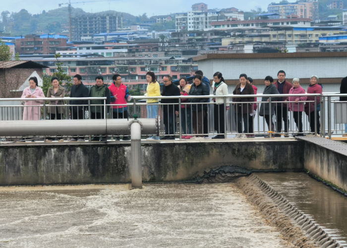 活動(dòng)中,周家壩污水廠科長(zhǎng)蘭和平帶領(lǐng)代表們沿著污水處理工藝流程,逐個(gè)參觀講解,讓代表們近距離觀察污水如何由“濁”變“清”。