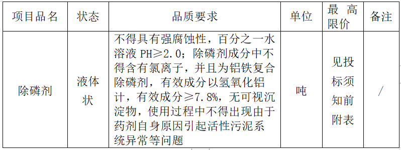 2020年度水處理藥劑(除磷劑)采購(gòu)項(xiàng)目